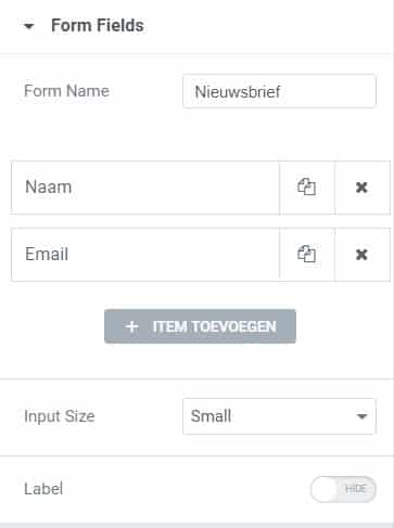Als je een popup maakt voor een nieuwsbrief moet je een formulier toevoegen (het kan zijn dat deze al in het template zit dat je hebt gekozen). Dit werkt op dezelfde manier als het toevoegen van een inschrijfformulier op een pagina. Ook kun je het inschrijfformulier direct koppelen aan je mailingtool.
